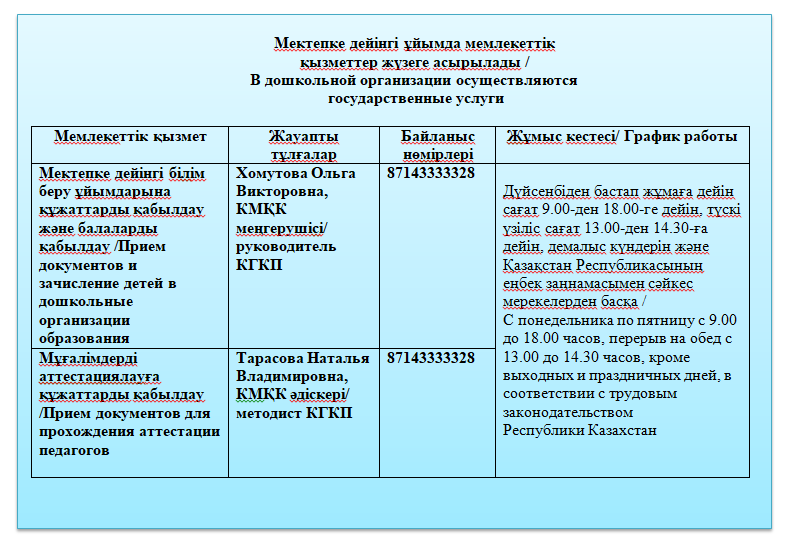 Лисаков қаласы білім бөлімінің «Ивушка бөбекжай-бақшасы» КМҚК 2025 жылғы Мемлекеттік қызмет көрсету мәселелері бойынша қызметі туралы Ақпарат