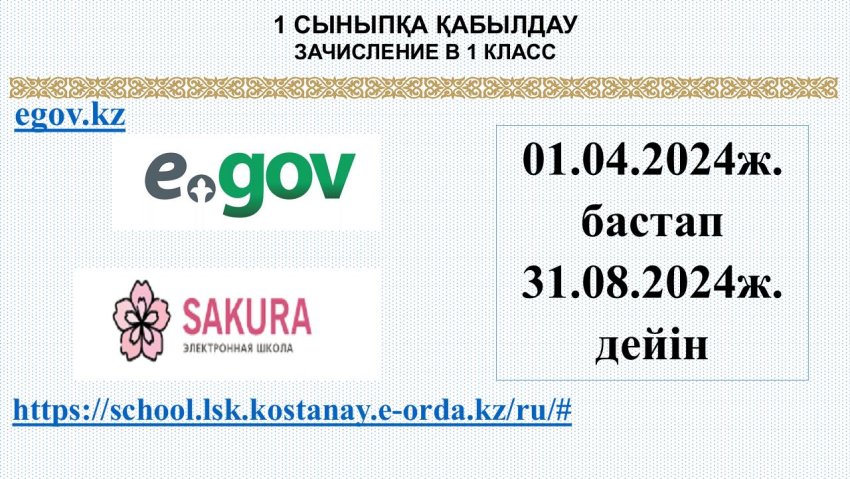 1 сыныпқа қабылдау / зачисление в 1 класс