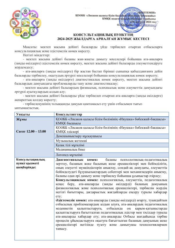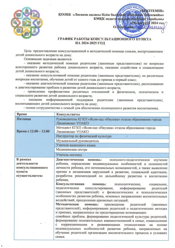 График и план работы консультационного пункта на 2024–2025 год